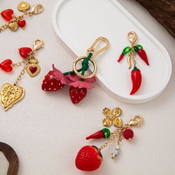 กระเป๋าพวงกุญแจโลหะเคลือบทองรูปหัวใจพริกสแตนเลสสำหรับฤดูร้อน