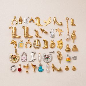 मन्ना विंटेज व्यक्तित्व डिय सामान सोने की प्लेटेड बूट्स प्राकृतिक मोती धनुष स्टेनलेस स्टील आकर्षण गहने बनाने के लिए