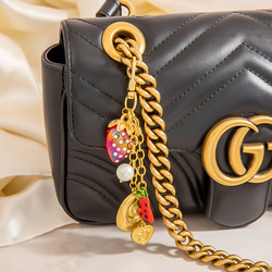 मैना फैशन उच्च गुणवत्ता 18k सोने की प्लेटेड स्टेनलेस स्टील प्यारी चेरी कीचेन बैग आकर्षण श्रृंखला सजावट