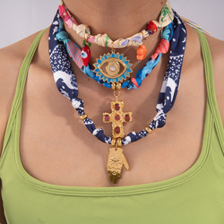 Манна винтажный из нержавеющей стали крест сглаз коренастый шарф Шелковый шарф ожерелье для женщин
