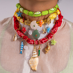 Манна красочный из нержавеющей стали раковина маленькая рыба натуральный камень циркон шелковый шарф бандана очарование ожерелье